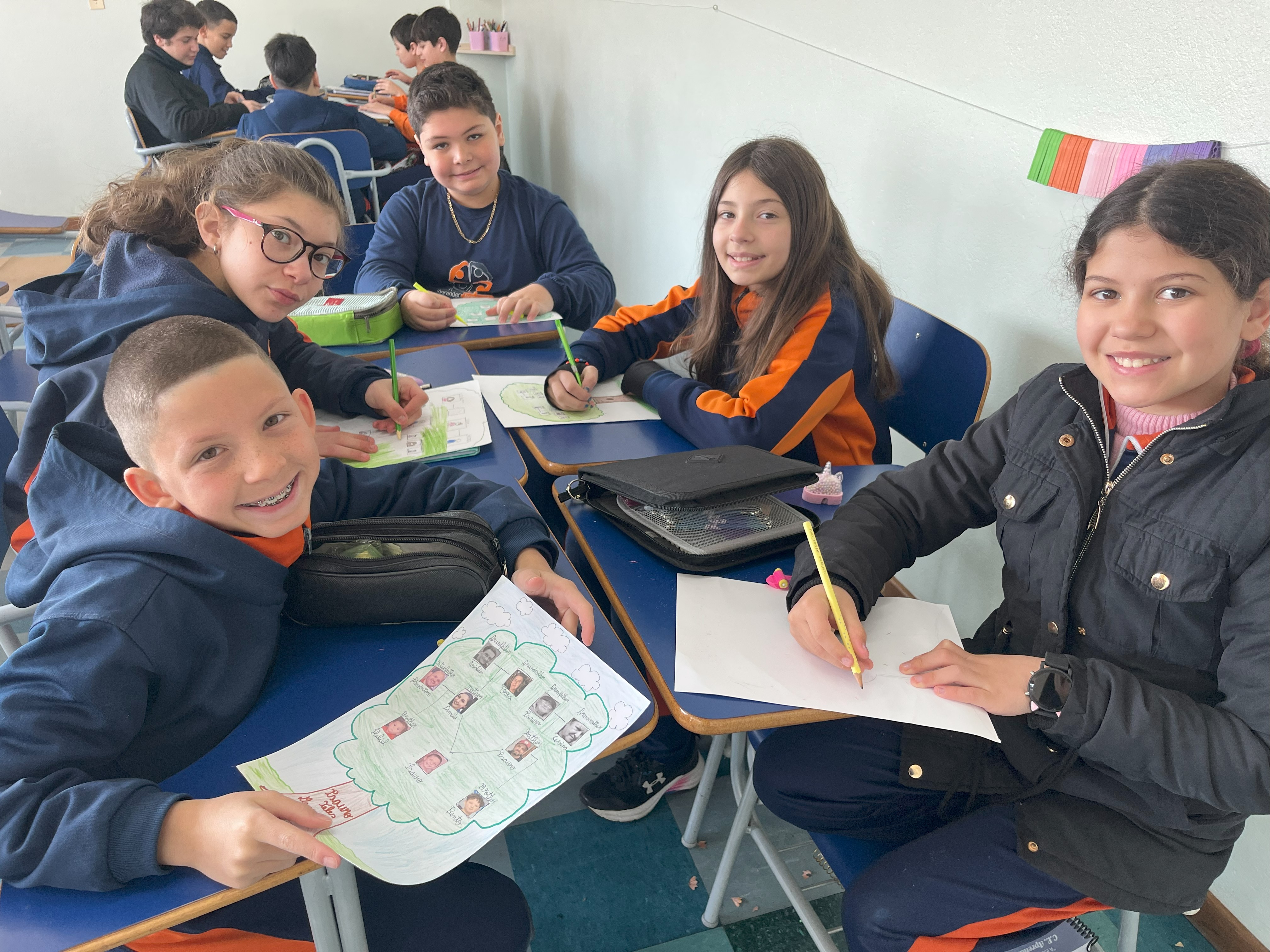 Os alunos do 6° ano matutino e vespertino, trabalharam na disciplina de Inglês os adjetivos possessivos juntamente com o vocabulário referente à família. Primeiramente conhecemos o vocabulário da família, depois trabalhamos o conceito dos adjetivos possessivos, seguido de atividades orais e escritas em que os alunos praticaram o que foi aprendido. Depois cada aluno construiu sua árvore genealógica.
